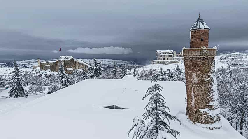 Etkili olan kar yağışıyla birlikte medeniyetler beşiği bin 200 rakımlı tarihi Harput Mahallesi beyaz gelinliğini giydi.
